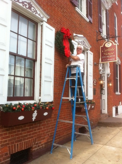 Alan is decorating the outside and Mary the inside in anticipation of your holiday visit.